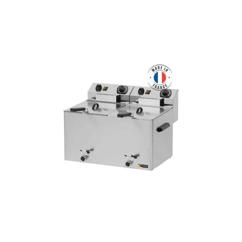 Esta fritadeira Kitchen Line é ideal para profissionais de restauração. Fabricada em aço inoxidável 18/0, é ao mesmo tempo resistente e durável. Possui duplo tanque para uma capacidade total de 12 L. Com isso, você poderá cozinhar belas quantidades de batatas fritas. Fácil de usar, inclui uma faixa de temperatura entre 50°C e 190°C.