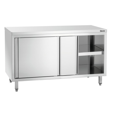 Com as suas portas de correr que permitem uma abertura e fecho rápidos, este móvel baixo de arrumação oferece a possibilidade de armazenar pratos, panelas ou alimentos protegendo-os do pó e sujidade. Todo em aço inoxidável, este móvel de arrumação profissional limpa-se facilmente e rapidamente. Possui pés quadrados de 40 x 40 mm com ponteira de nivelamento ajustável de 50 mm.